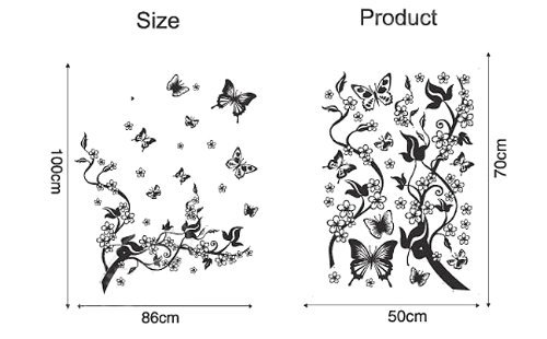 Reviews Mordern House Removable Decal Sticker Plum Blossom Tree Branch and Flying Butterflies